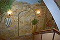 Freizeitbad H2O Herford - Sauna, Illusionsmalerei Illusionsmalerei verwittertes Mauerwerk mit Nischen und verschiedenen Utensilien Ausführungszeitraum: September 2006 |