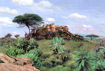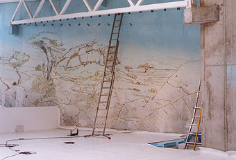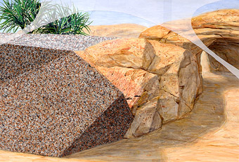 Patinierung von Kunstfelsen, Illusionsmalerei Erdreich/ Gestein, Wandmalerei afrikanische Savanne